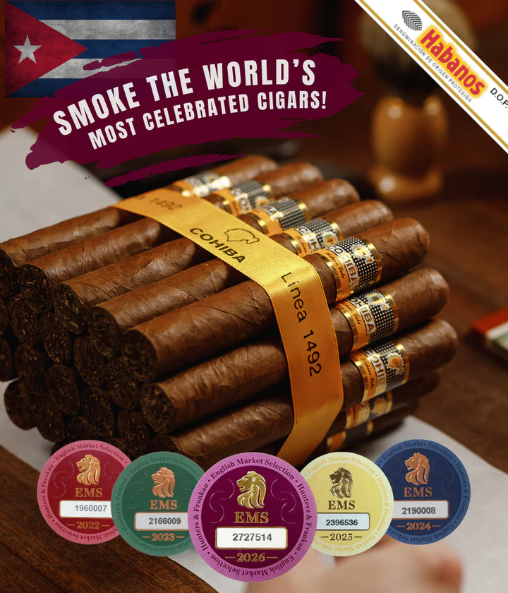 From Greens of Leeds to Smoke-King-Hub, our family has been dedicated to offering the finest Havana cigars for over 25 years. Through our long-standing and trusted relationship with Hunters & Frankau, we are proud to be a “Specialist” stockist, offering a wide range of EMS Cuban cigars, including rare and vintage selections. Our two large walk-in humidors (one dedicated entirely to Cuban cigars) are maintained at optimum humidity by our expert team.
